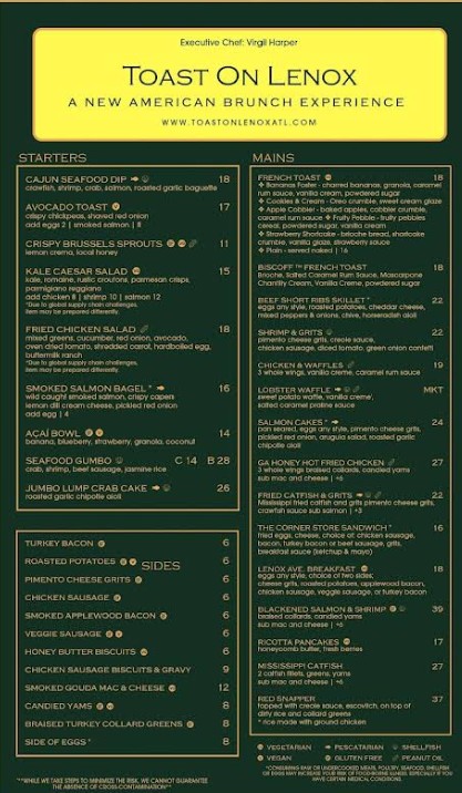 At Toast On Lenox, we’re proud to be Atlanta’s go-to spot for dynamic breakfast, brunch, and lunch. Our Toast On Lenox Restaurant menu features a flavorful variety of classic Southern comfort and modern favorites, including golden waffles, fresh salads, hearty entrées, and handcrafted cocktails. Whether you’re dining in with friends, grabbing a quick curbside pickup, or enjoying delivery, our welcoming atmosphere and creative menu options make every visit memorable. Located in the heart of Atlanta, we’re here to turn every meal into a reason to celebrate.